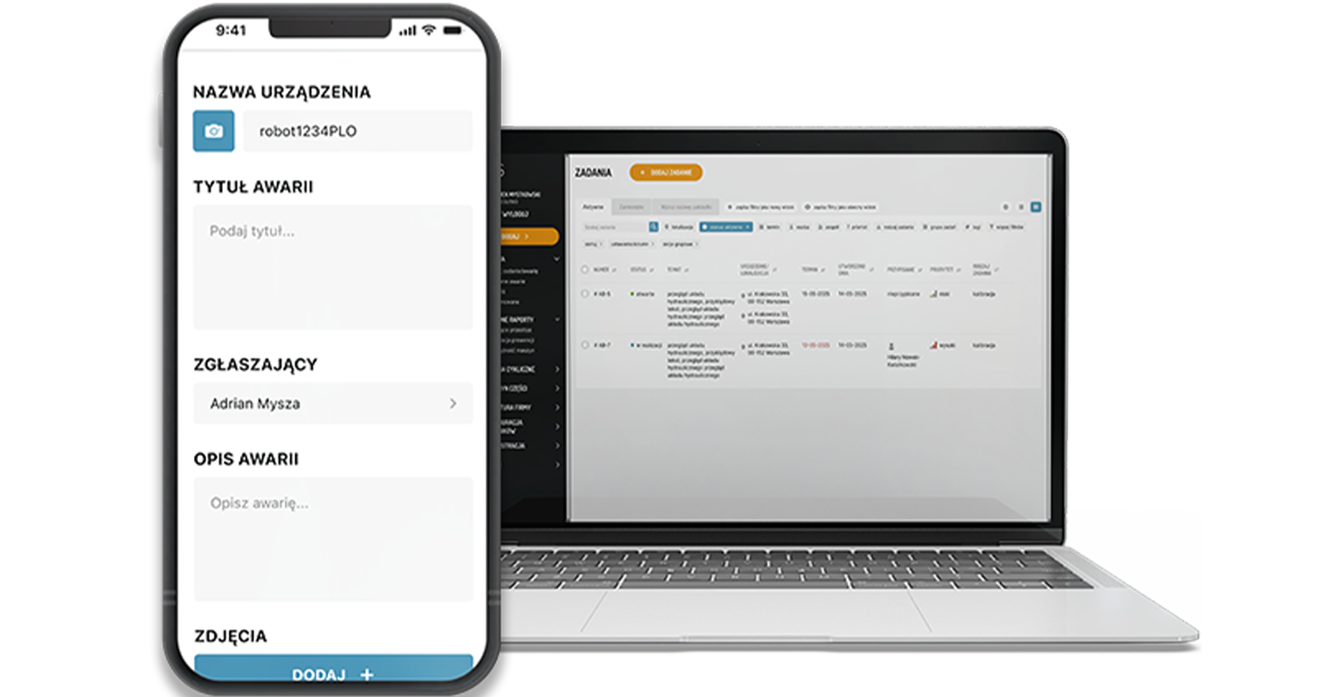 - Rozbudowane raporty – m.in. koszty napraw, czas przestojów, awaryjność maszyn. Pomagające w podejmowaniu strategicznych decyzji np. o wymianie maszyny.